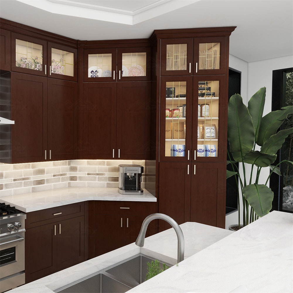 Glass-front cabinets allow homeowners to display their dishes and glassware while keeping them safe and protected. These cabinets can come in any style, such as shaker, raised panel, or flat panel. Glass-front cabinets are perfect for homeowners who want to add some elegance and sophistication to their kitchen.