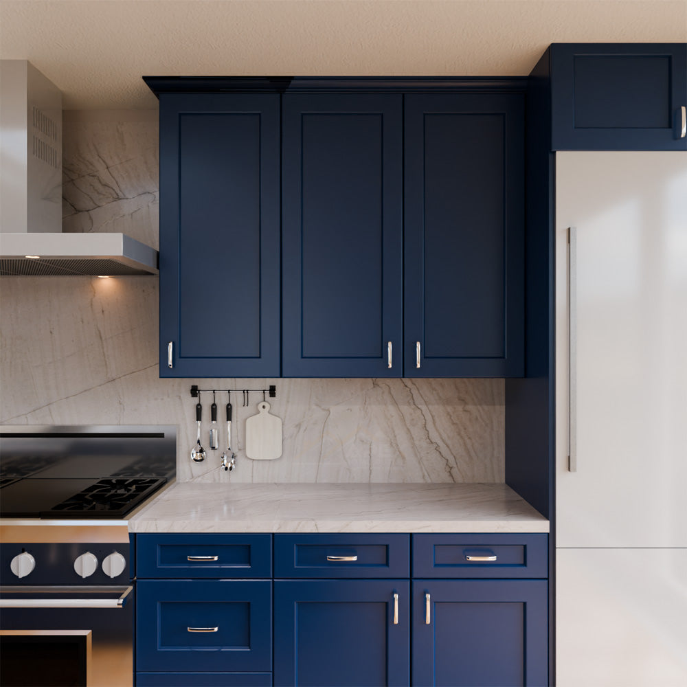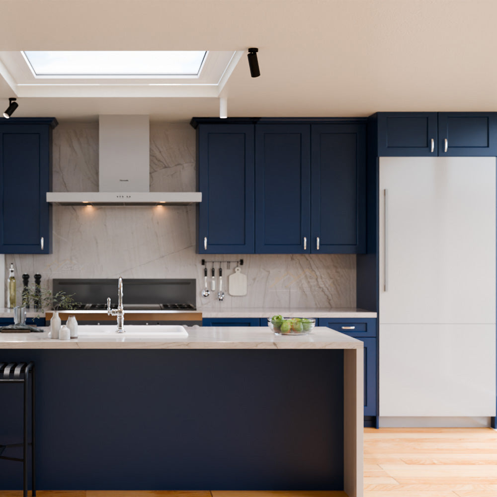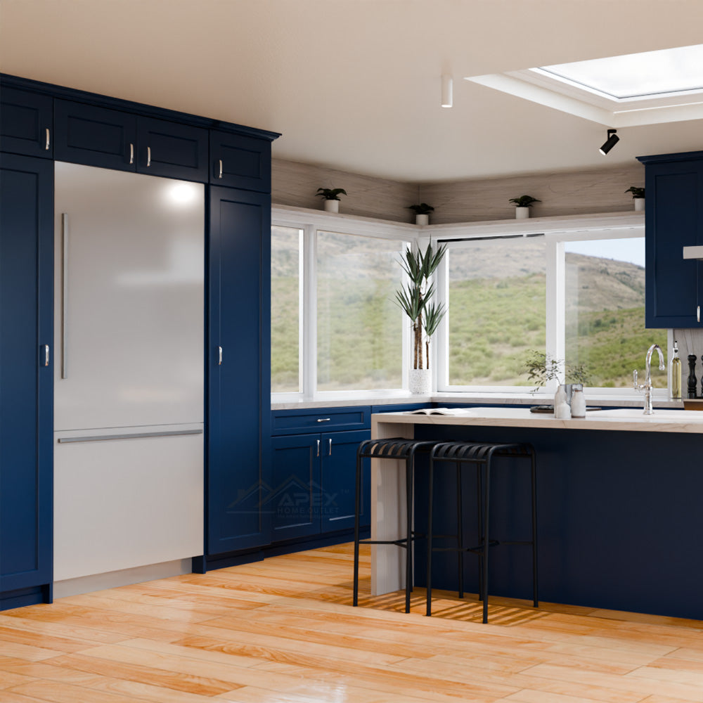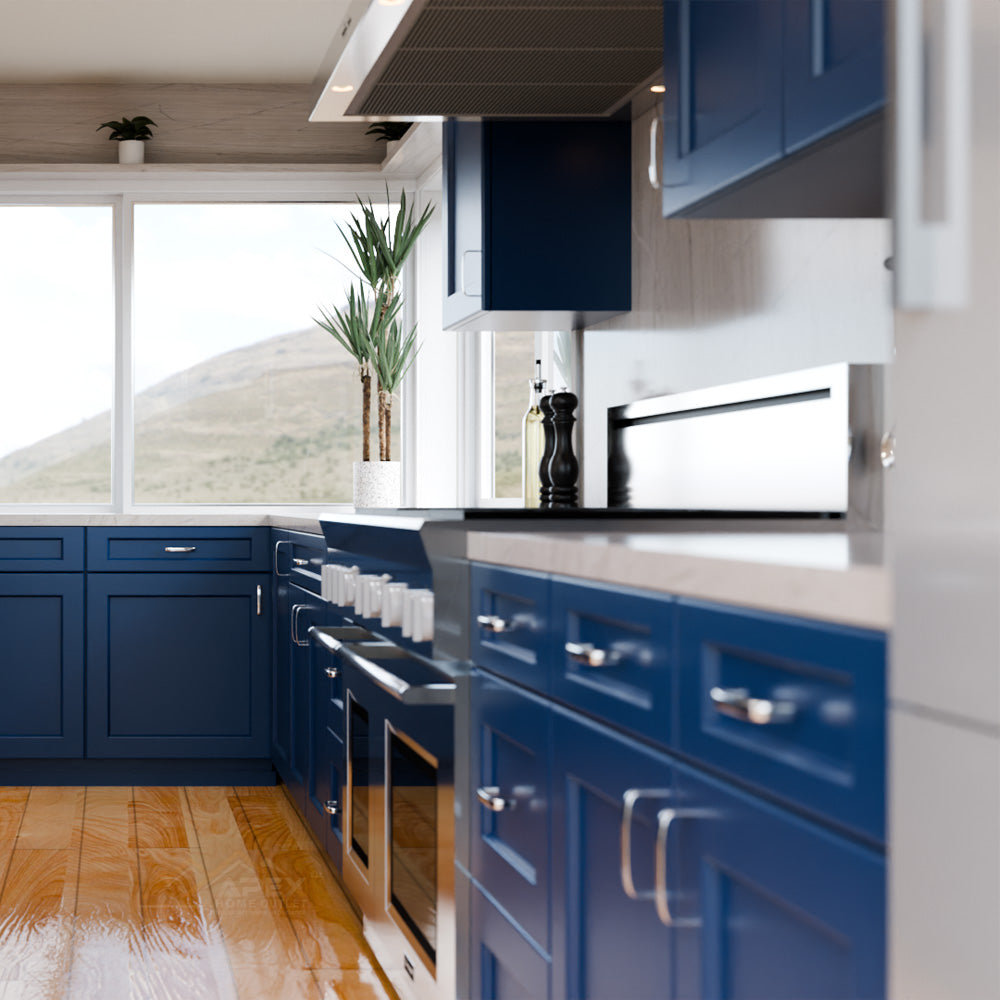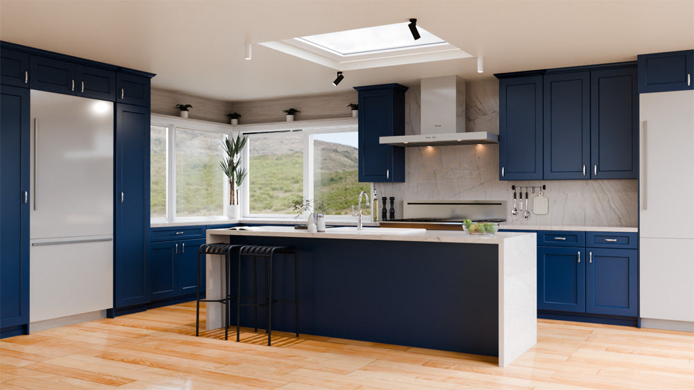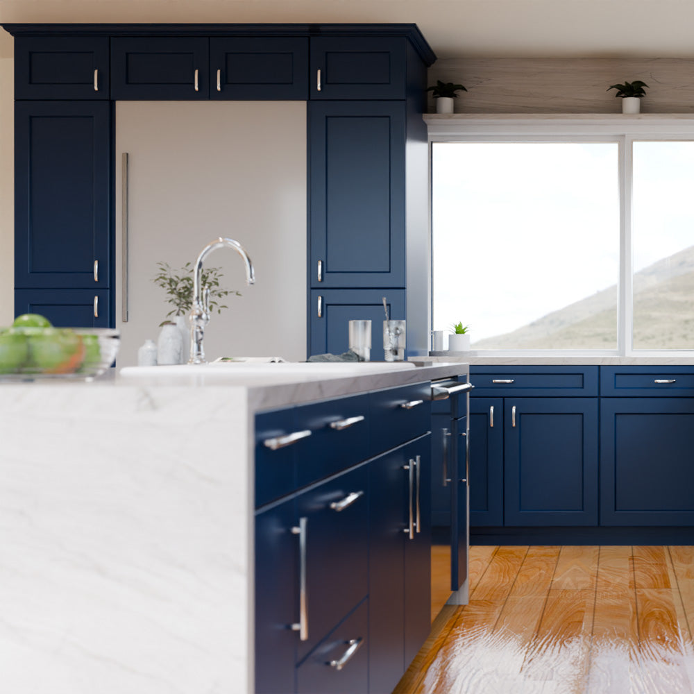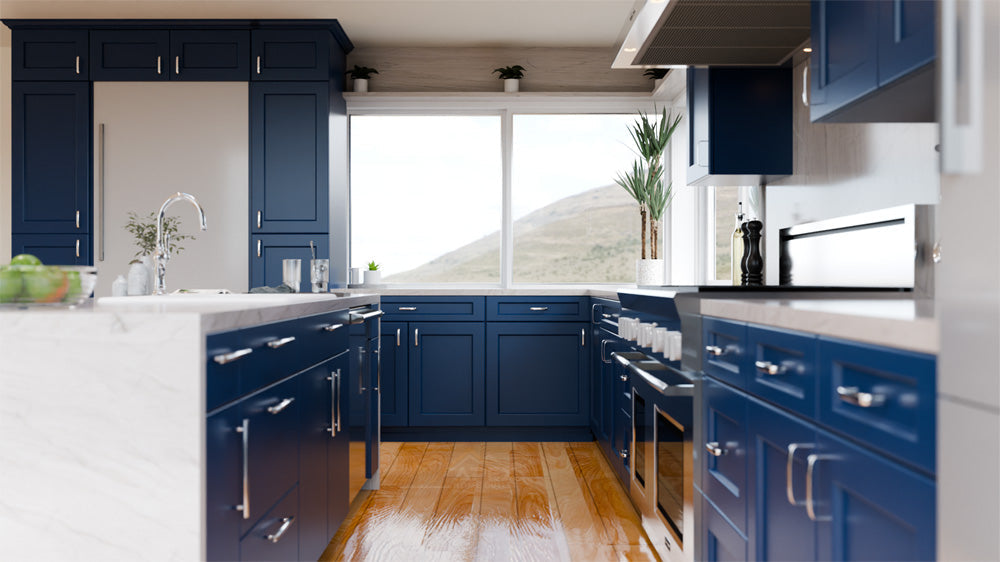 Blue cabinets are a trendy and popular choice for kitchen cabinets. Blue cabinets can come in different shades, from light blue to navy blue, and they add a refreshing and calming vibe to the kitchen. Blue cabinets work well with different materials such as marble, quartz, and granite, creating a chic and modern kitchen.