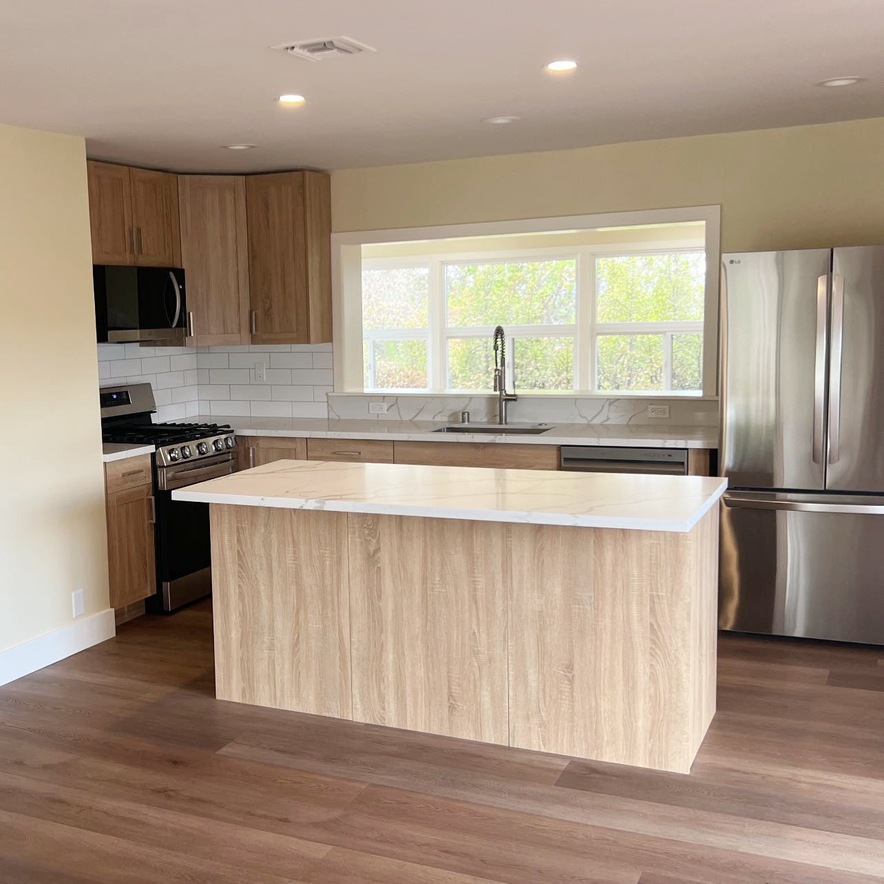 Natural wood cabinets are a warm and inviting choice for kitchen cabinets. They add a natural and organic feel to the kitchen. Natural wood cabinets come in different types of wood such as oak, maple, cherry, and birch, and they can be stained or painted to match the kitchen's design. Natural wood cabinets work well with different materials such as granite, quartz, and marble, creating a cozy and inviting kitchen.