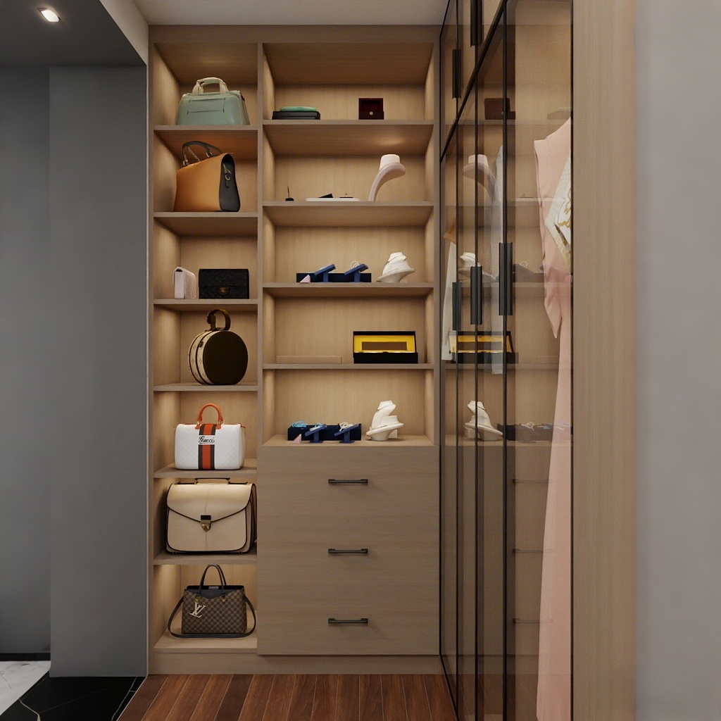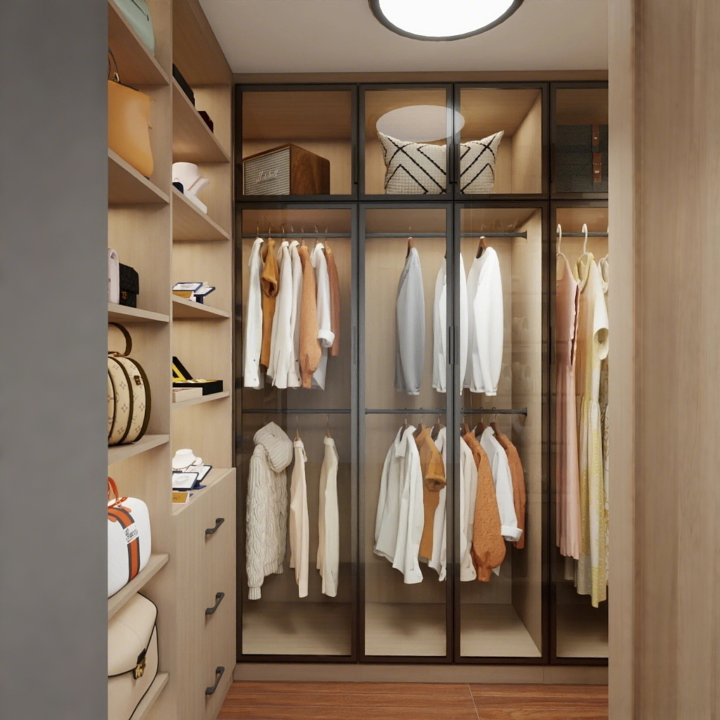 The Urban Elegance Glass Wardrobe System is a refined modern closet design that blends transparent luxury with warm natural materials. Designed for contemporary homes and upscale walk-in wardrobes, this model balances display, storage, and sophistication.